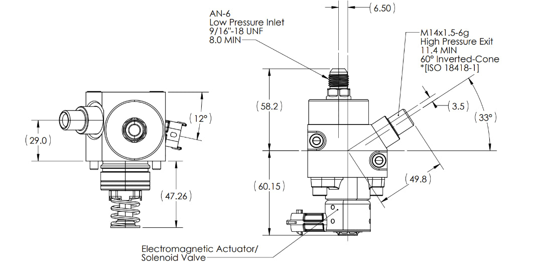 Capable of 250 bar rail pressure sustained operation, this HPFP has a much higher pressure rating than the production GM LT4 pump.